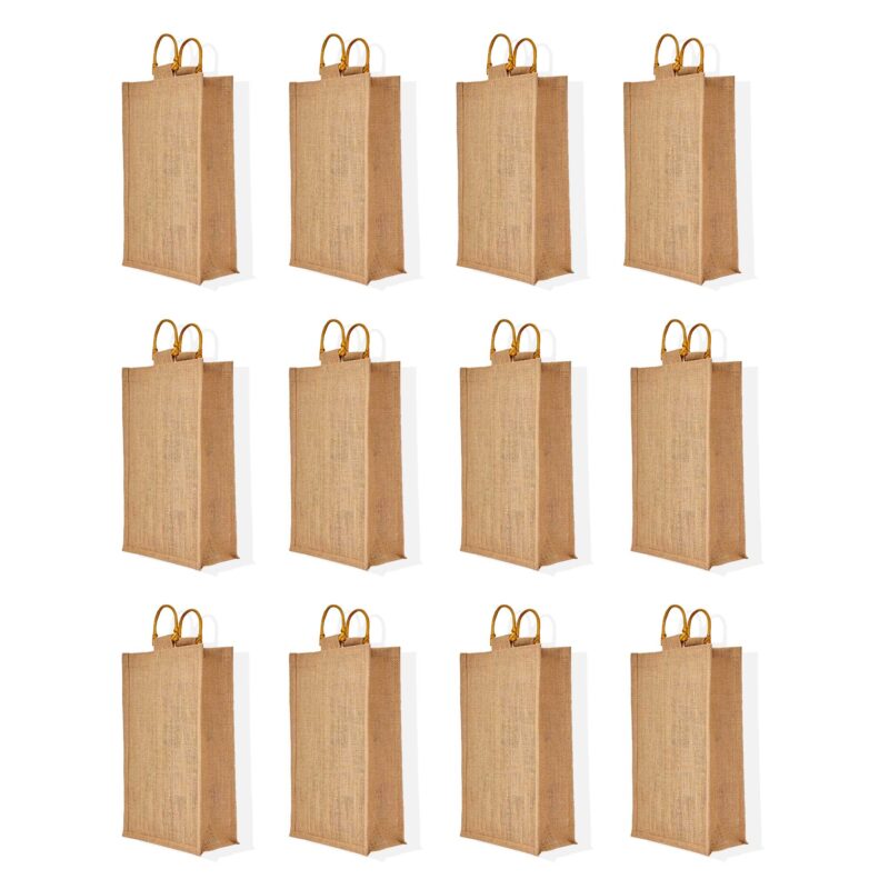 12-Pack Jute Reusable Wine Bags 7.88×13.38×3.93in for 2-Bottles