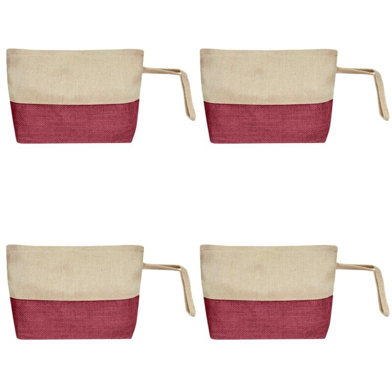 4 Juco Tote Bags – 15x12x6 Deep Red, Pink, Green, Orange