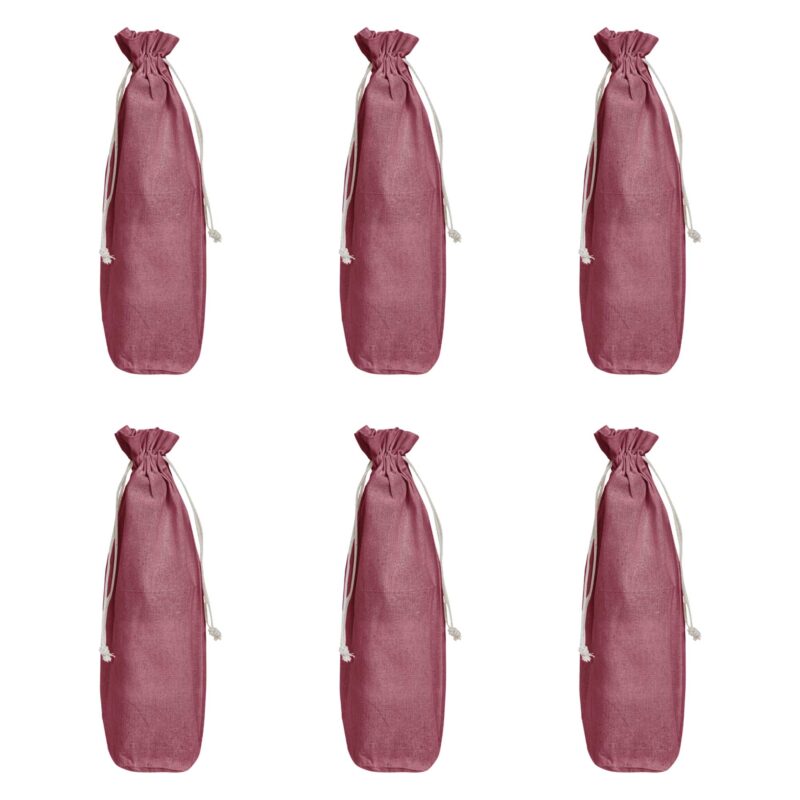 6-Pack Cotton Wine Bags – Deep Red, Pink, Green, Orange 13.77″ x 7.09″ x 3.93″