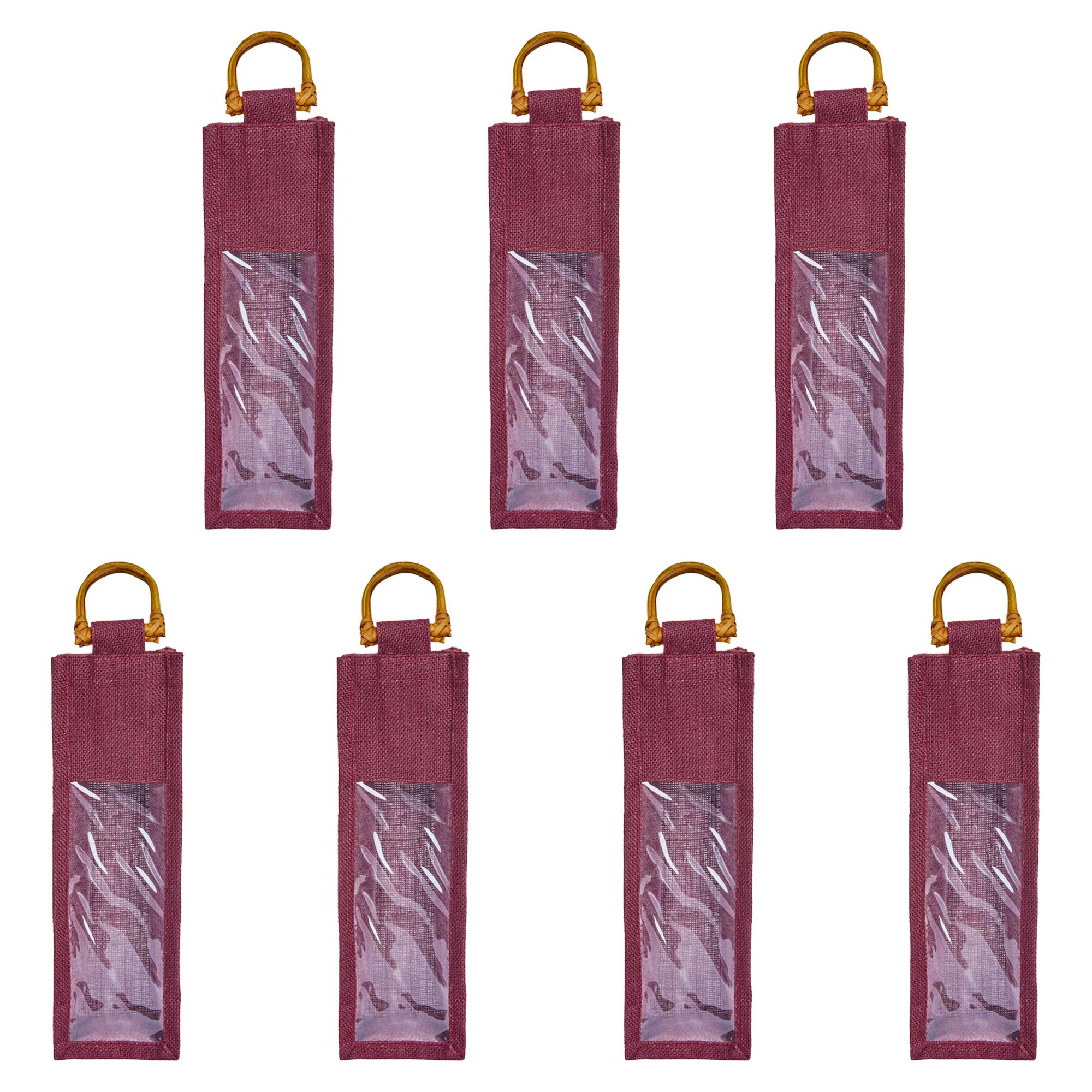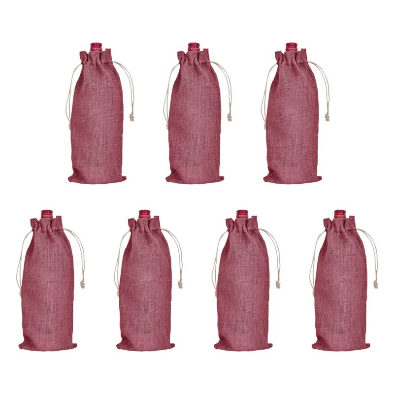 7-Pack Jute Wine Bags – Deep Red, Pink, Green, Orange -14.17″ x 5.9″