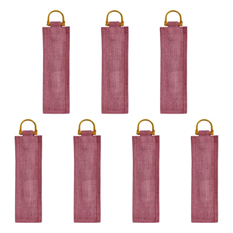 7-Pack Jute Wine Bags – Deep Red, Pink, Green, Orange with PVC & Cane Handles- 13.38″ x 3.93″ x 3.93″