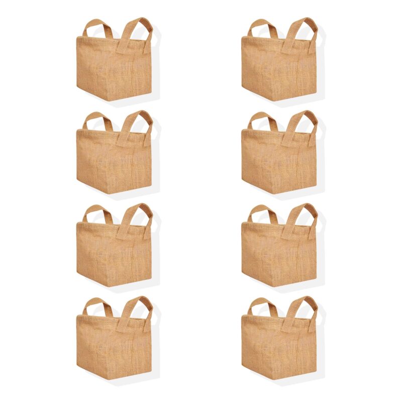 8-Pack Ecojute Jute Shopping Bags 13H x 16L x 7W – Reusable Beach & Gift Bags