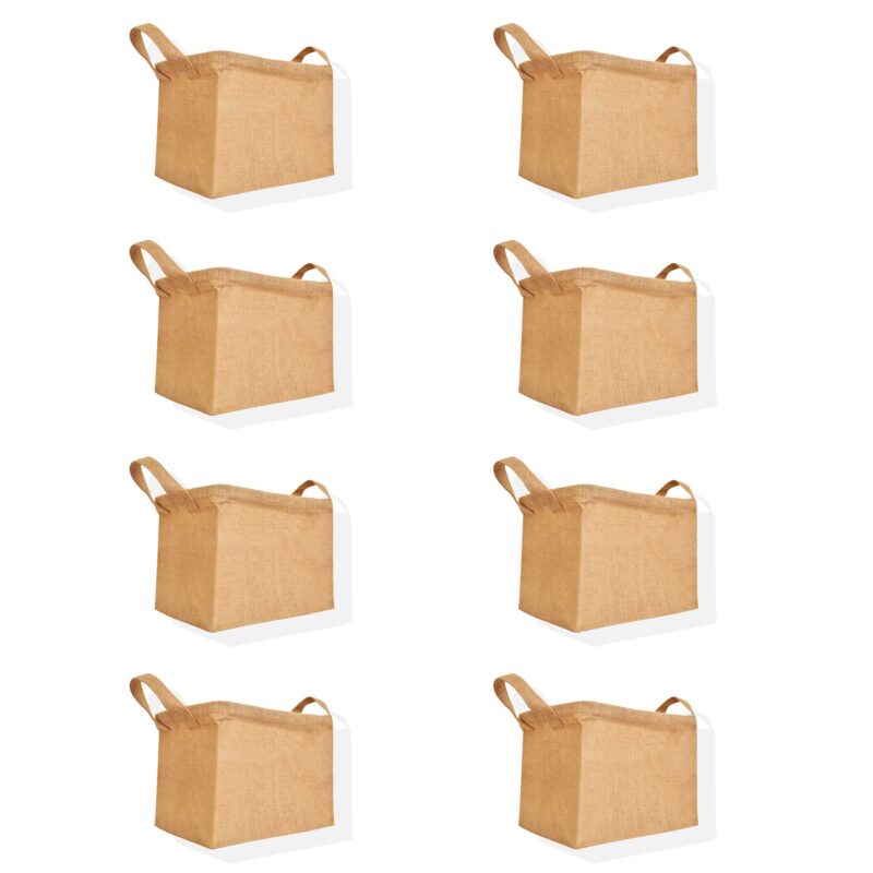 8-Pack Burlap Tote Bags – Reusable Jute Bags for Beach, Shopping -16″x16″x8″