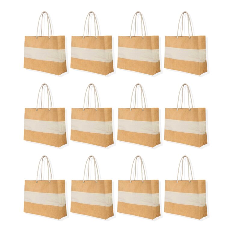 Ecojute Jute Shopping Bags 22H x 14L x 6W – Pack of 12 Reusable Casual Bags