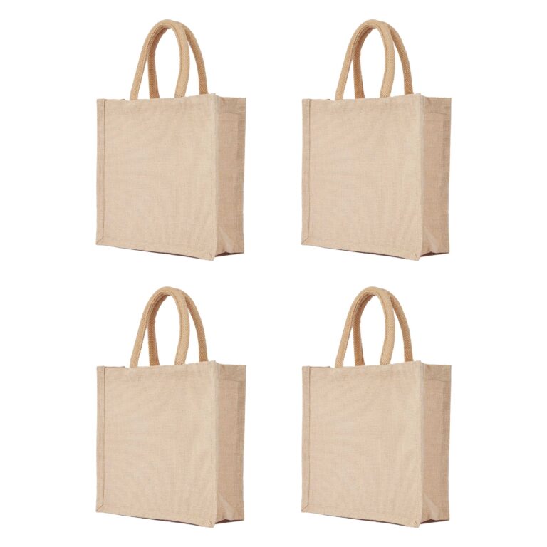 4-Pack Juco Tote Bags 9″x12″x6″ – Reusable Burlap Bags with Handles