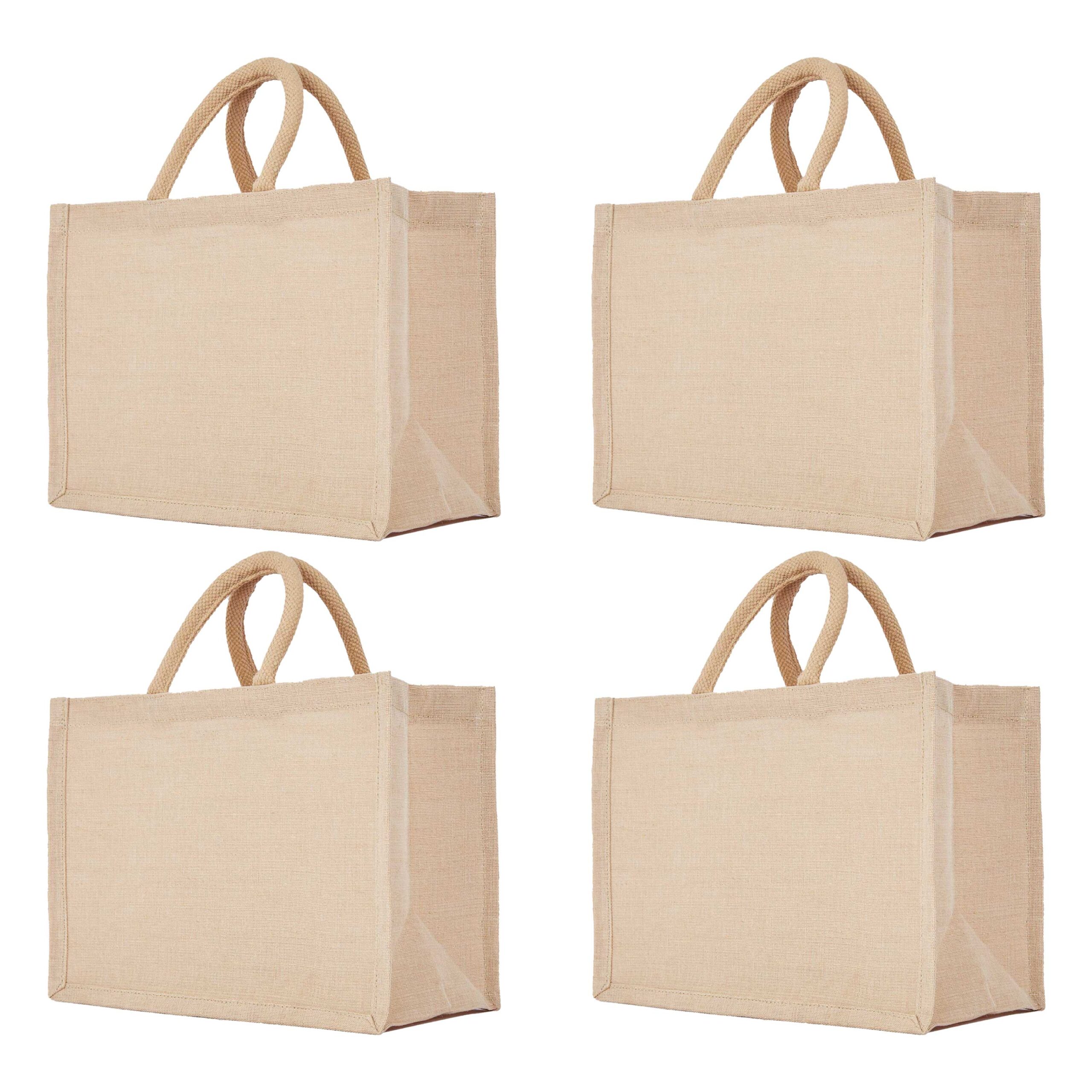 Set of 4 Juco Tote Bags – 14″x12″x6″ Reusable Grocery Bags with Lining