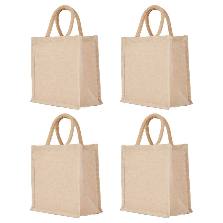 4-Pack Juco Tote Bags 9″x12″x6″ – Reusable Burlap Bags with Handles