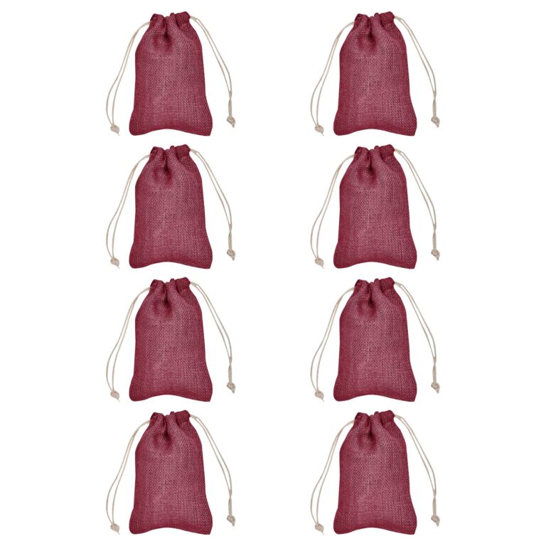 Burlap Gift Bags 9.05″x 6.69″–Deep Red, Pink, Green, Orange- Set of 8