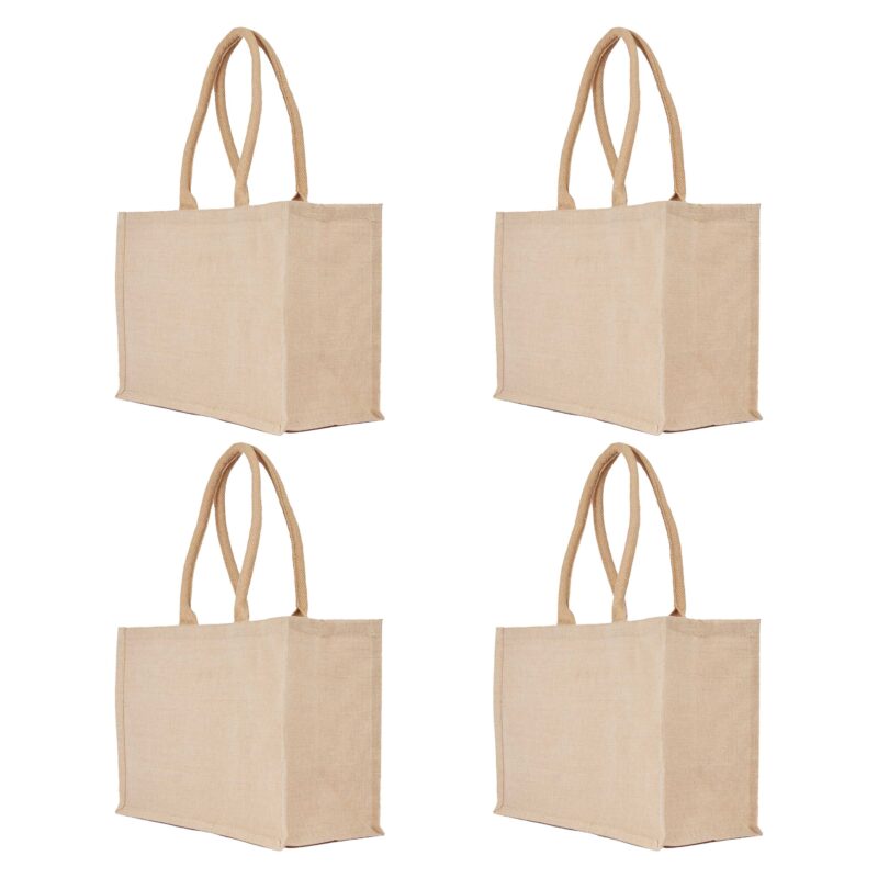 Pack of 4 Juco Tote Bags – Sturdy Burlap Totes with Handles, 9″x12″x6″