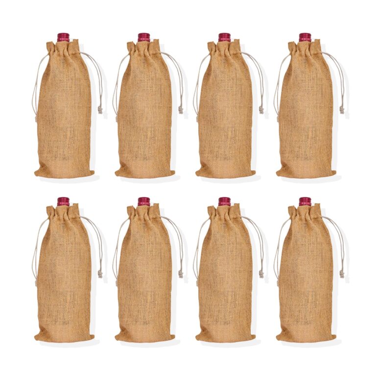8-Pack Jute Single Bottle Wine Bags 5.9×14.17in – Burlap Pouches for Gifts