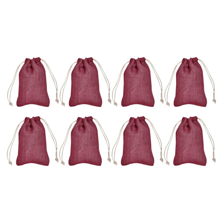 Pack of 8 Jute Gift Bags or Pouches 7.08″ x4 .72″ – Deep Red, Pink, Green, Orange