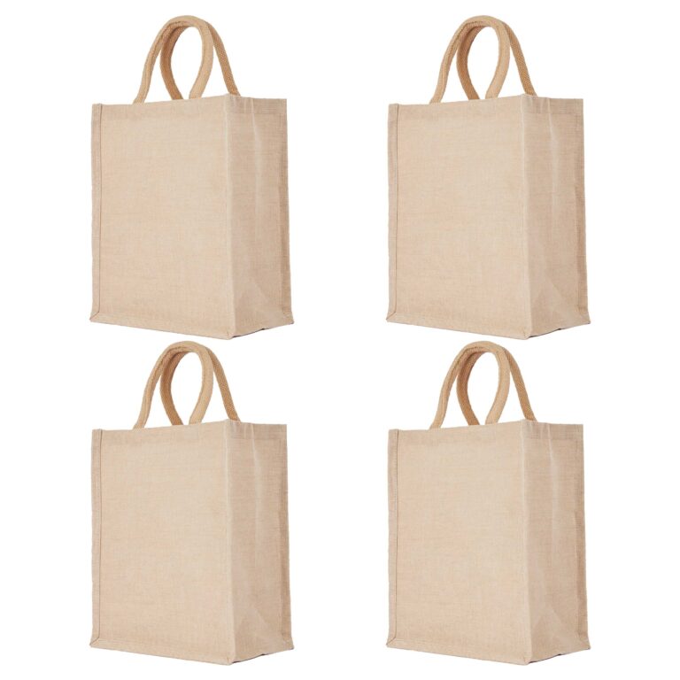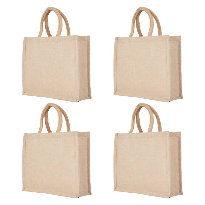 4-Pack Shopping Juco Handbags – Reusable Totes with Pocket, 12″x10″x4″