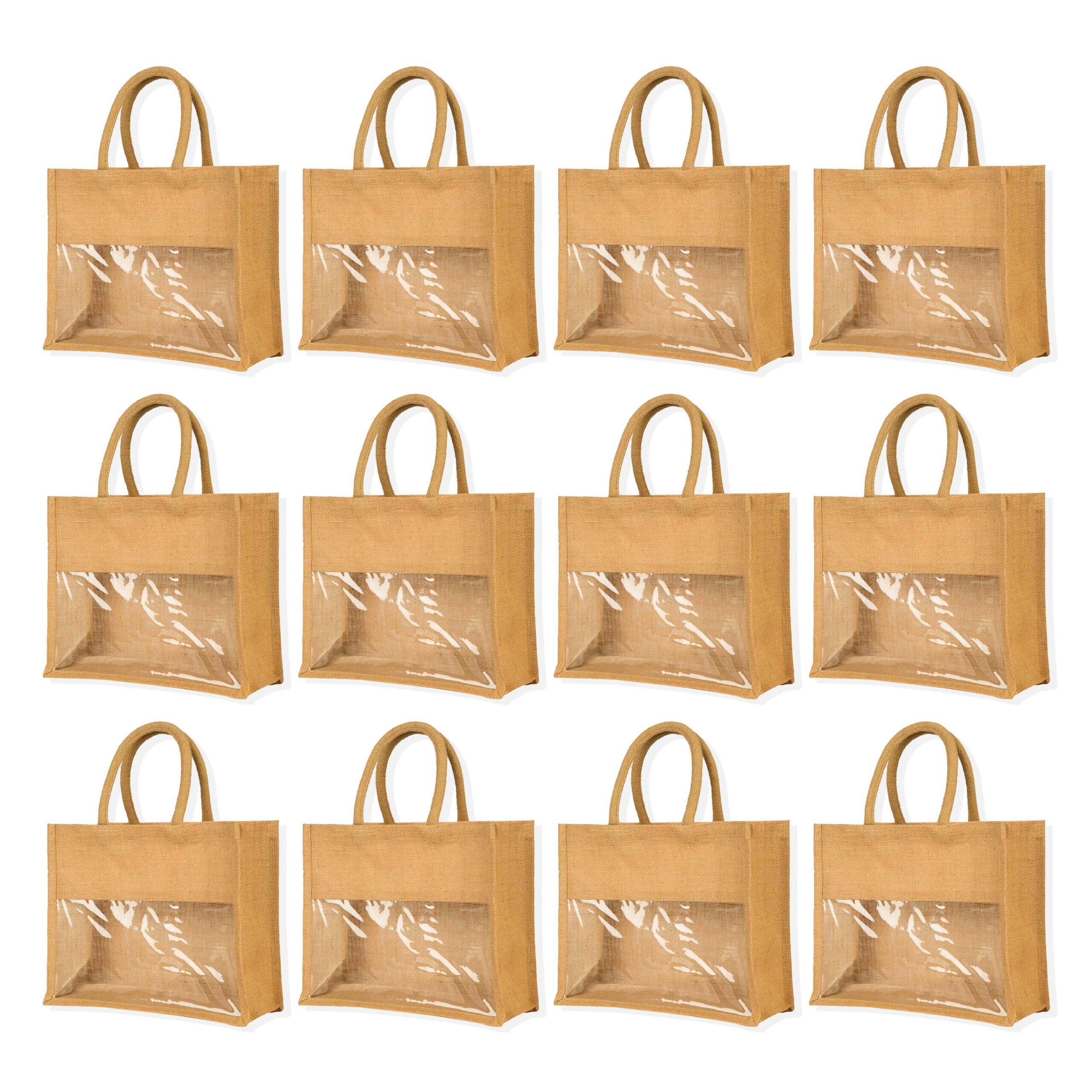 Set of 12 Jute Tote Bags with PVC – Gifts for Events, Weddings, 12″Lx10″Hx5″W