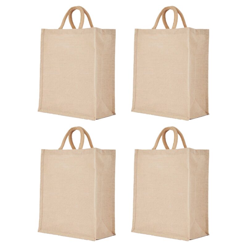 Set of 4 Juco Tote Bags – 14″x12″x6″ Reusable Grocery Bags with Lining