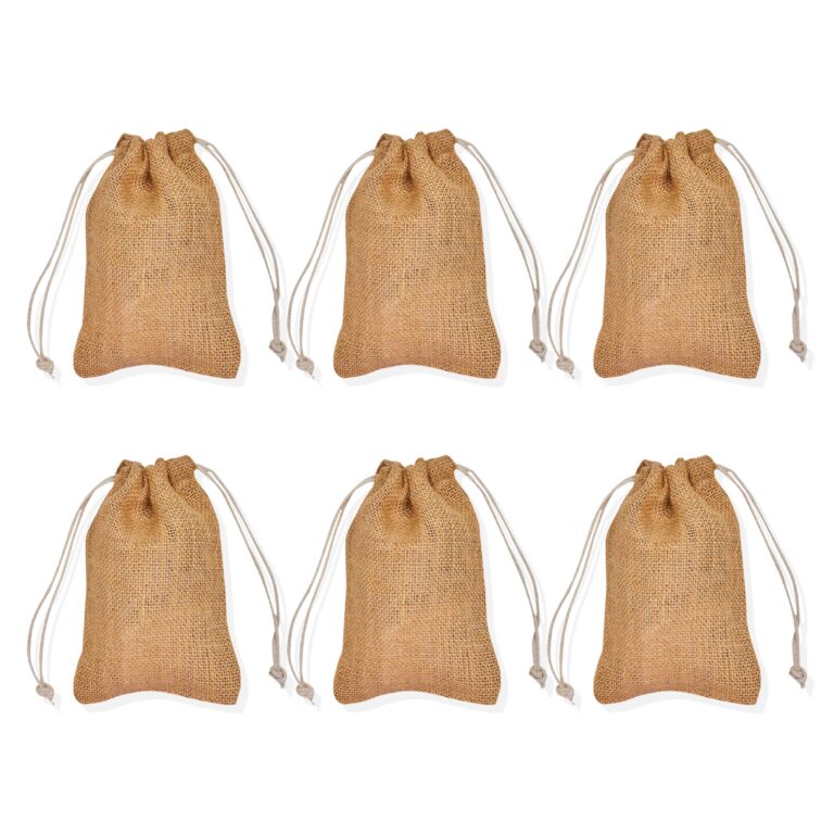 6 Burlap Gift Bags 5.9″x7.87″ – Jute Drawstring Pouches