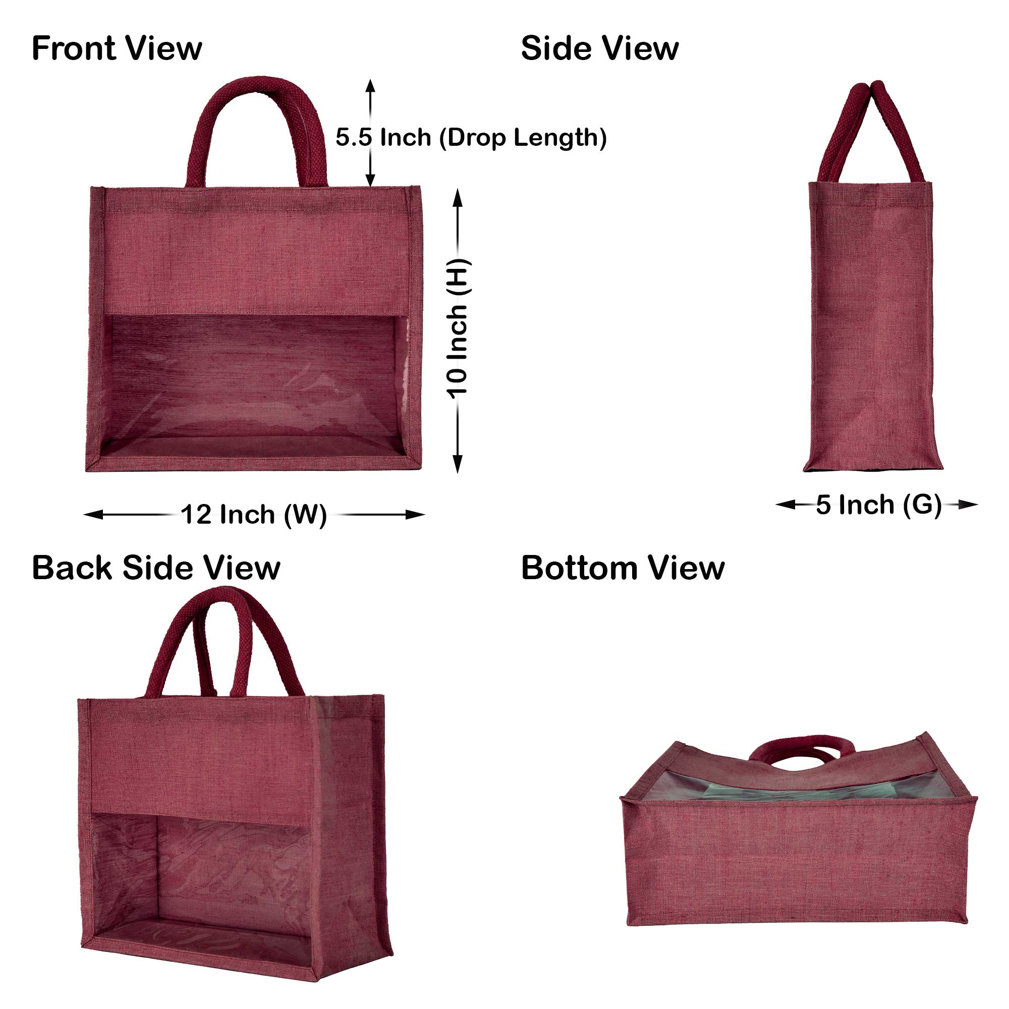 Set of 12 Jute Tote Bags with PVC – Gifts for Events, Weddings, 12″Lx10″Hx5″W