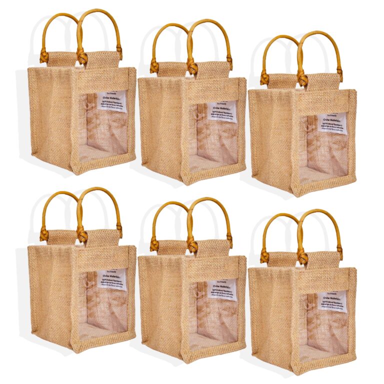 6 Natural Jute Gift Bags 4.34×5.11×3.93 – PVC & Cane Handle