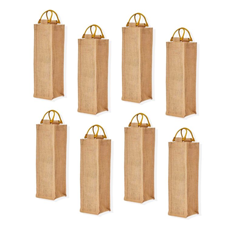 8-Pack Jute Single Bottle Wine Bags 3.93×13.38×3.93in – Cane Handle