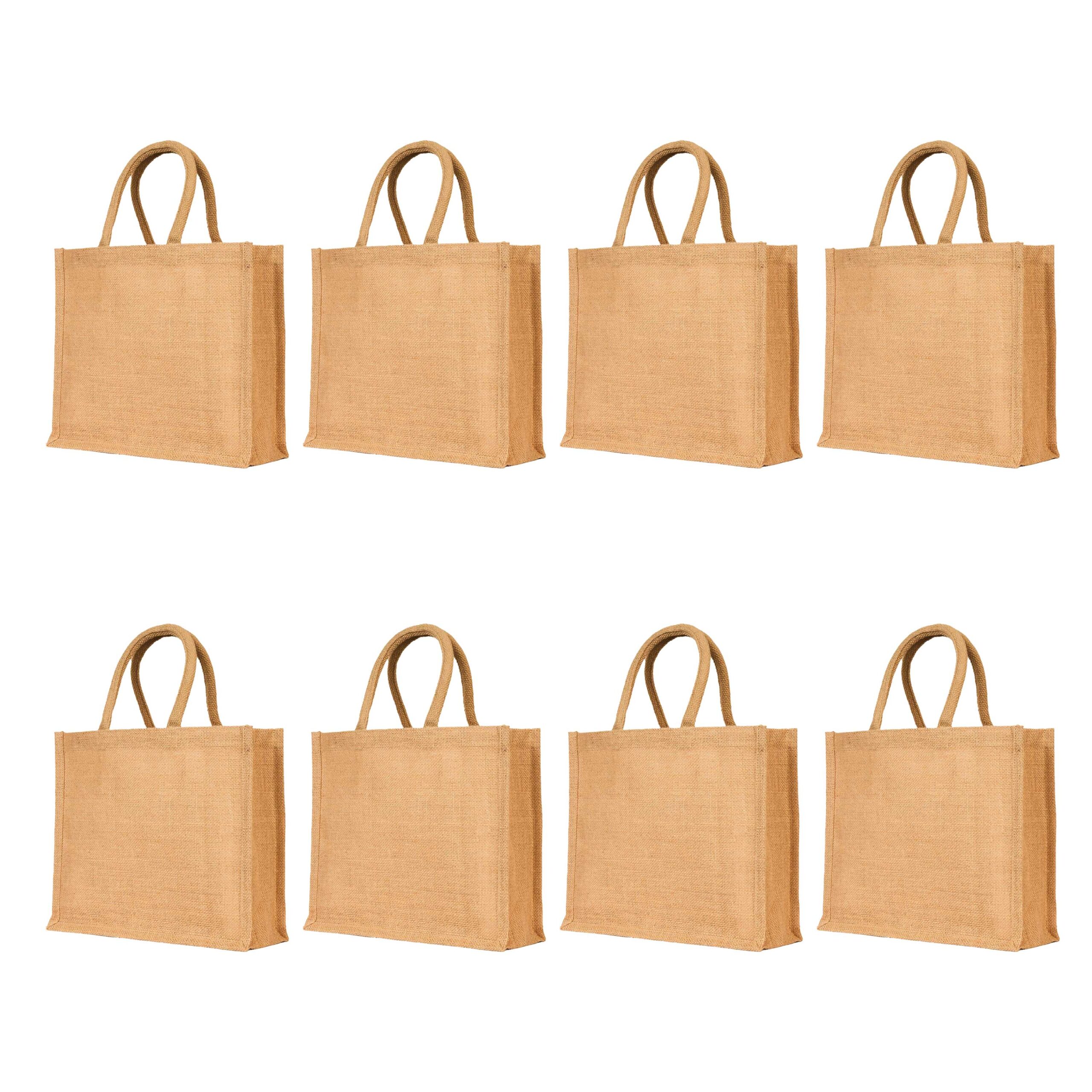 8-Pack Ecojute Jute Shopping Bags 13H x 16L x 7W – Reusable Beach & Gift Bags
