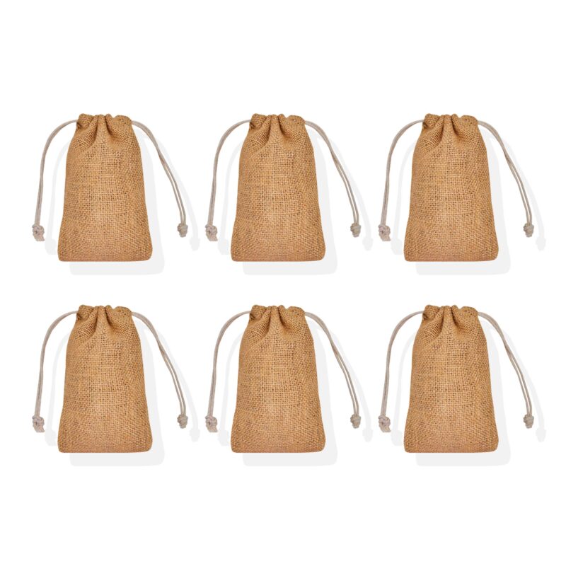 6 Burlap Drawstring Bags 3.93″x6.29″ – Small Pouches for Gifts