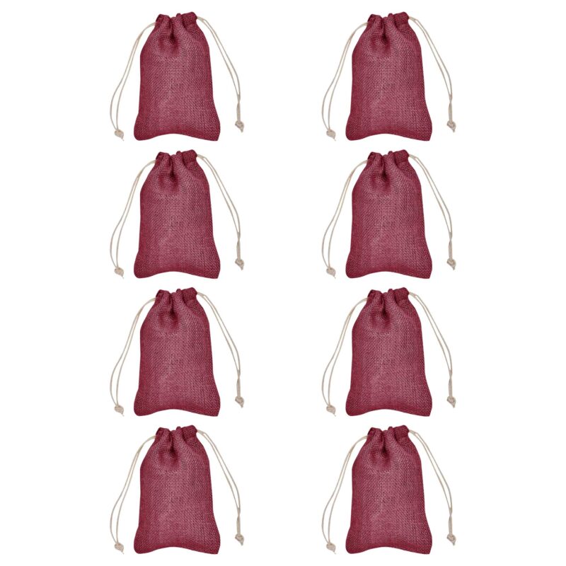 Burlap Gift Bags 9.05″x 6.69″–Deep Red, Pink, Green, Orange- Set of 8