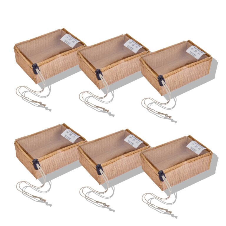 6 Jute Gift Boxes with Drawstring & PVC – 6.3″x4.33″x2.36″