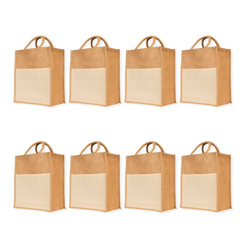 8-Pack Ecojute Jute Shopping Bags 13H x 16L x 7W – Reusable Beach & Gift Bags