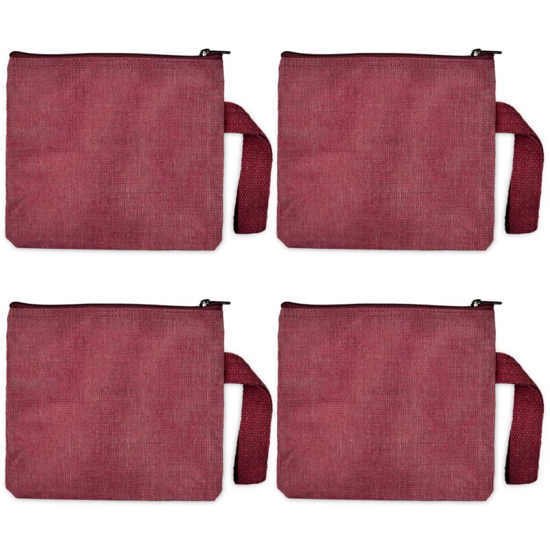 4 Juco Zipper Pouches -Deep Red, Pink, Green, Orange – 8″x7″