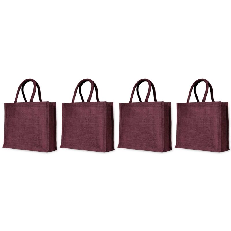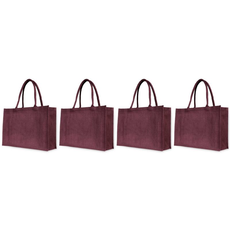 4-Pack Jute Tote Bags – Reusable 15″x12″x6″ Deep Red, Pink, Green & Orange