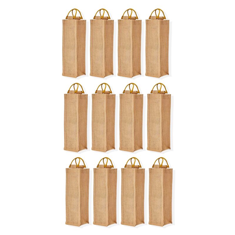 12-Pack Jute Wine Bags 3.93×13.38×3.93in – Single-Bottle Bag with Cane Handle