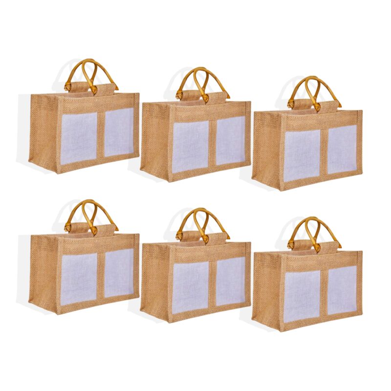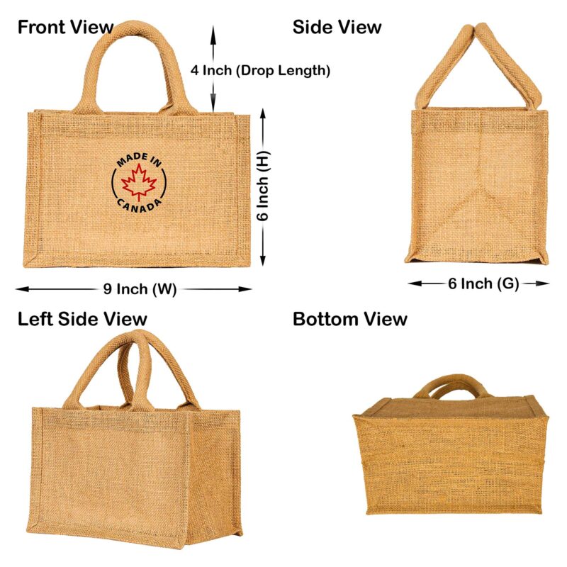 6 Jute Gift Bags – Cane Handles & Organza –8.27″x5.11″x3.39″