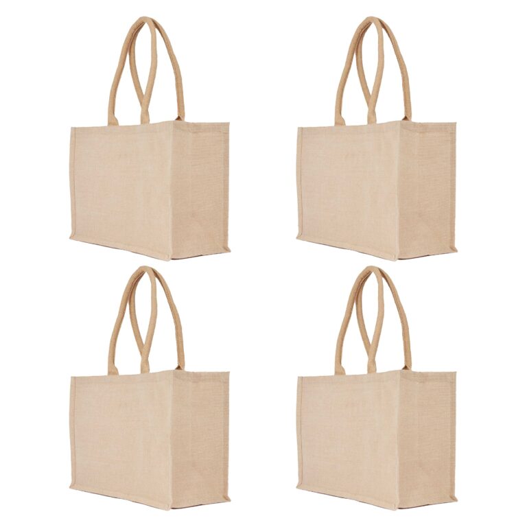 4-Pack Reusable Juco Tote Bags – Daily Use & Promotions – 16″ L x 12″ H x 7″ W