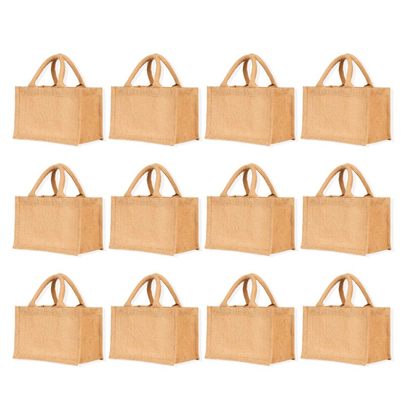 Ecojute Set of 12 Burlap Tote Bags – 6″H x 9″L x 6″W Reusable Jute for Gifting
