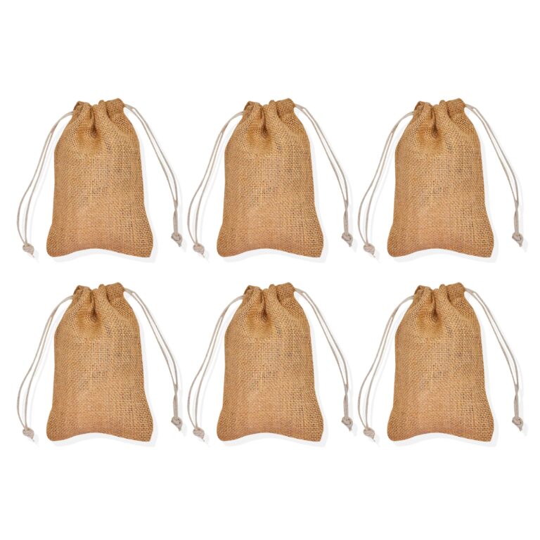 6 Burlap Gift Bags 5.9″x7.87″ – Jute Drawstring Pouches