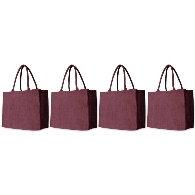 Ecojute Set of 4 Jute Tote Bags – Deep Red, Pink, Green & Orange – 18″x13″x3″