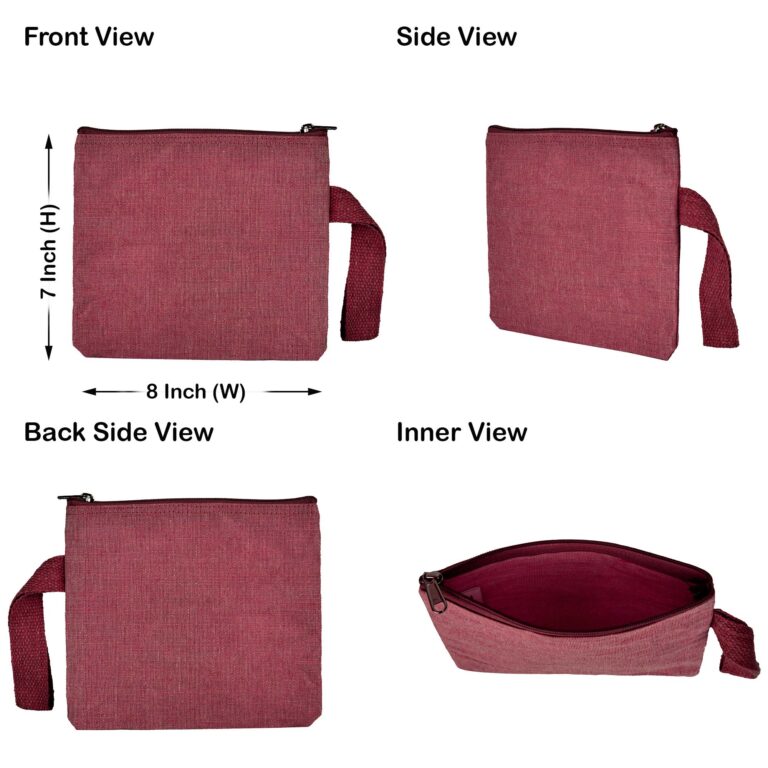 4 Juco Zipper Pouches -Deep Red, Pink, Green, Orange – 8″x7″
