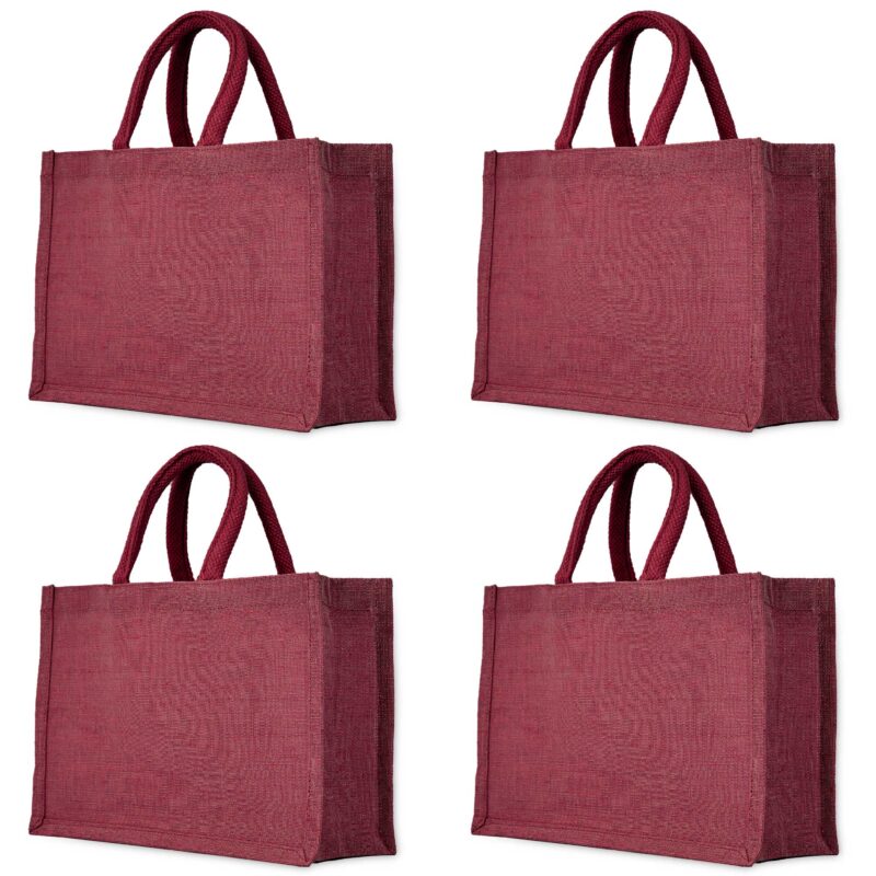 4-Pack Jute Tote Bags – Reusable 15″x12″x6″ Deep Red, Pink, Green & Orange