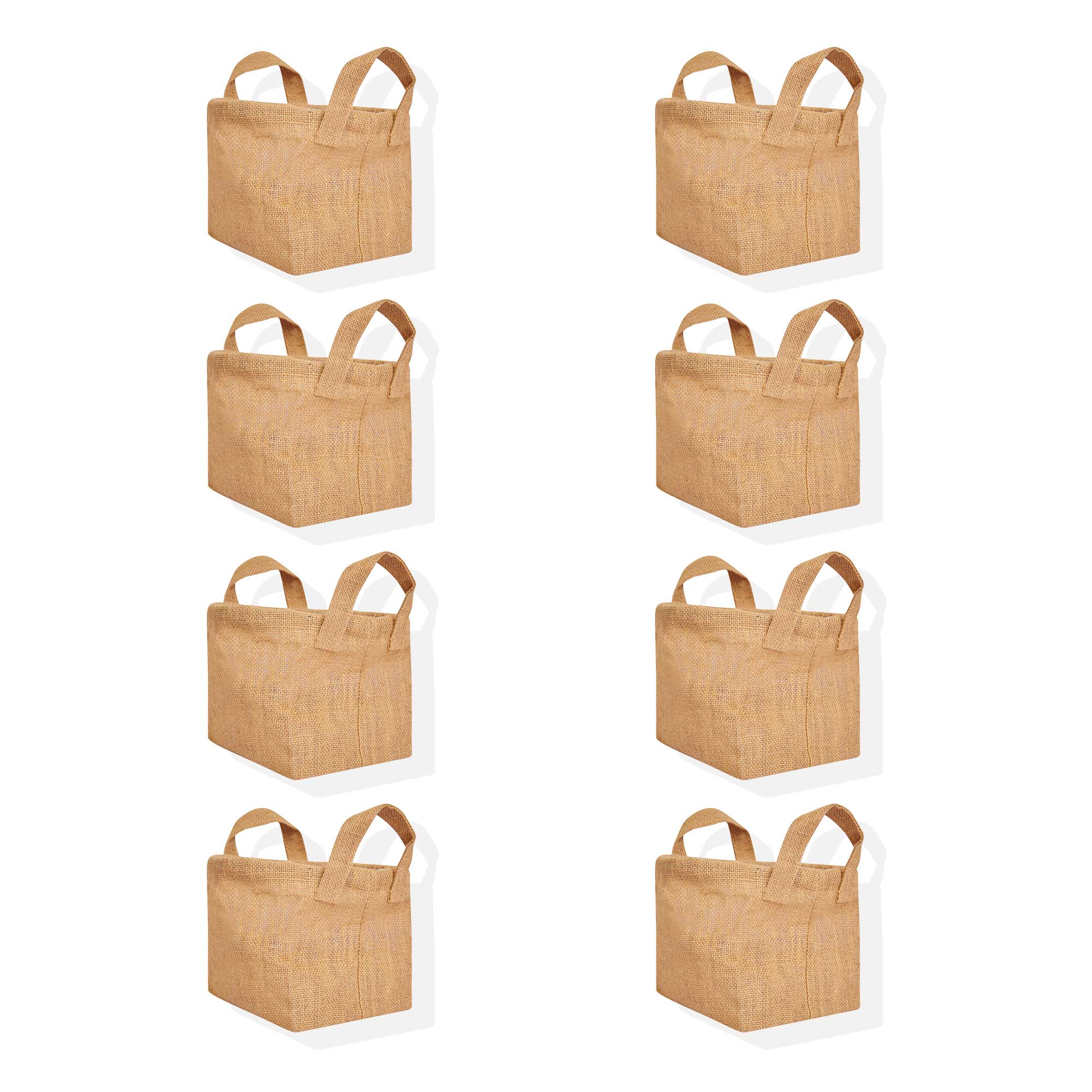 Ecojute 8-Pack Jute Tote Bags – 8″H x 12″L x 4″W Reusable Gift & Shopping Bags