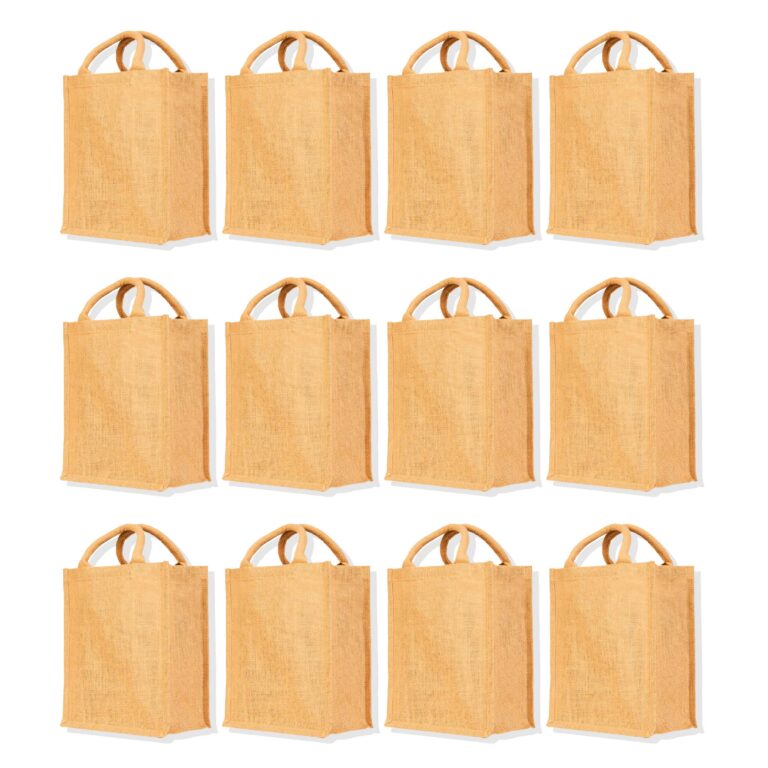 12-Pack Jute Grocery Bags – 8″H x 12″L x 4″W Reusable Shopping, DIY & Gifting