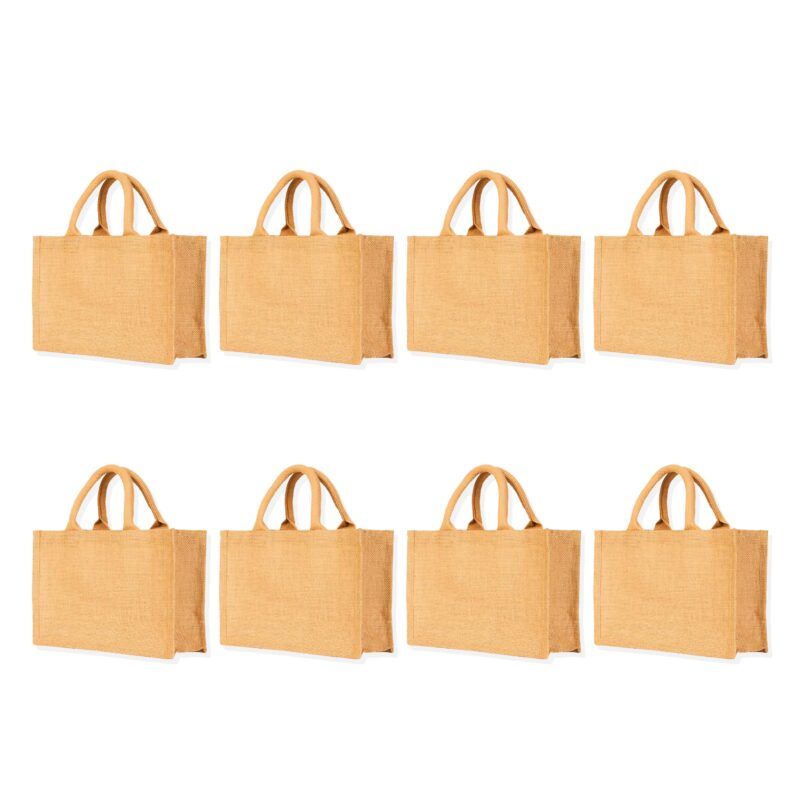 8-Pack Ecojute Jute Shopping Bags 13H x 16L x 7W – Reusable Beach & Gift Bags