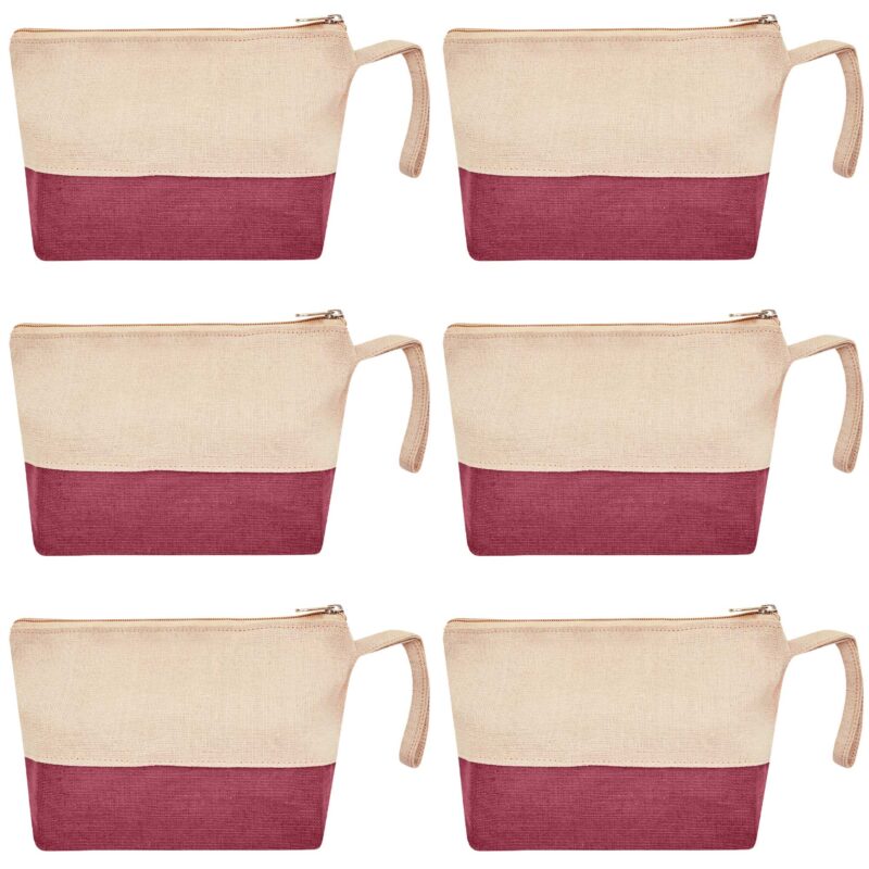 6-Pack Jute Cosmetic Pouches – Deep Red, Pink, Green, Orange – 5.9″x9.45″x2.95″