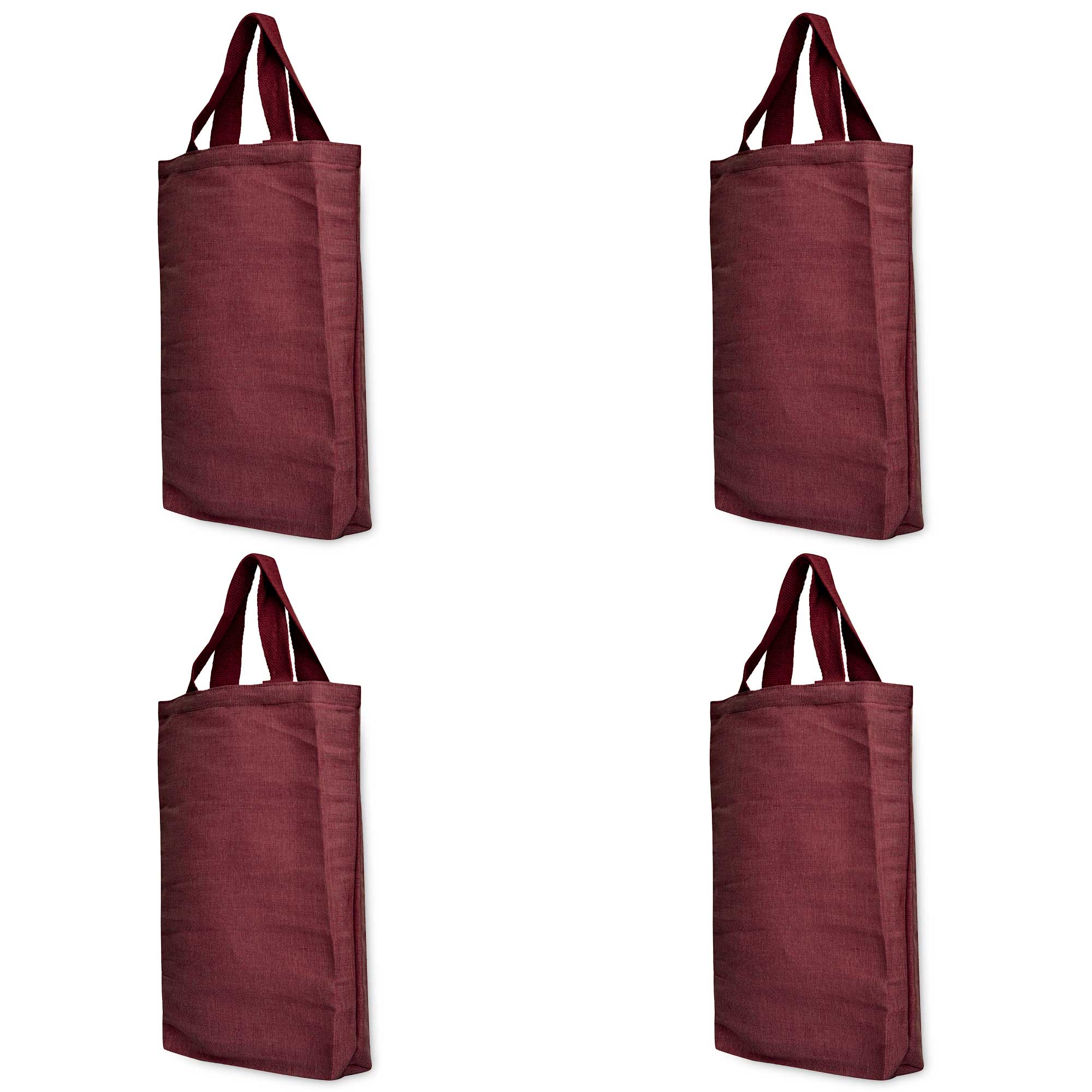4-Pack Reusable Grocery Juco Tote Bags With Flat Handles– 18″x13″x3″