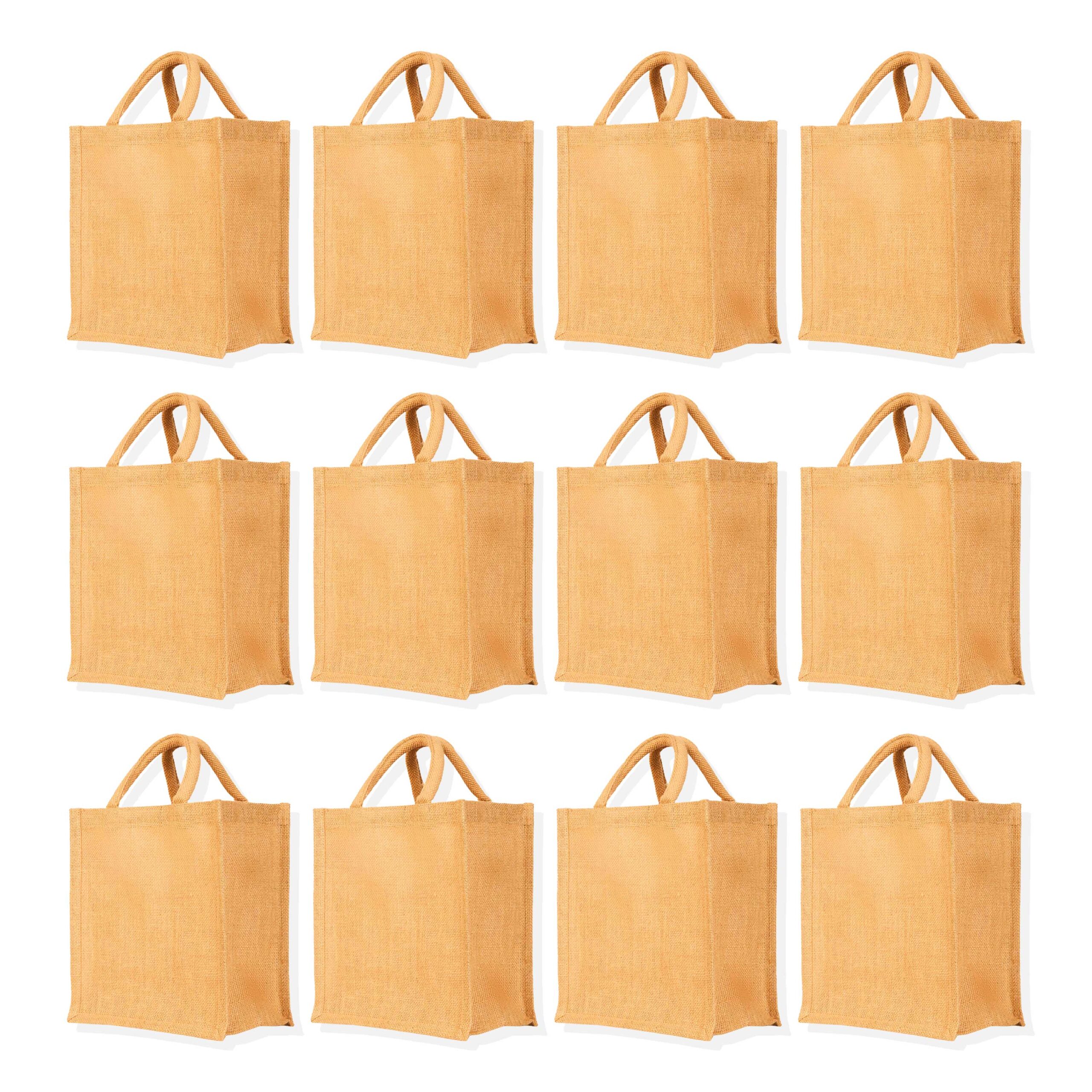 12-Pack Jute Grocery Bags – 8″H x 12″L x 4″W Reusable Shopping, DIY & Gifting
