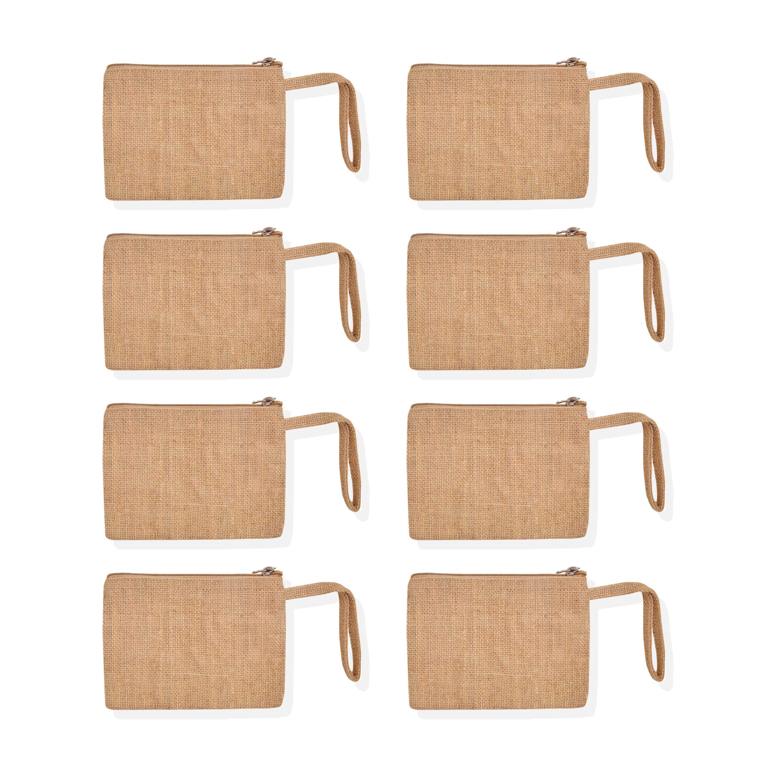 Ecojute 8-Pack Jute Travel Pouches – 7″H x 8″L Zipper Bags for Makeup & Crafts