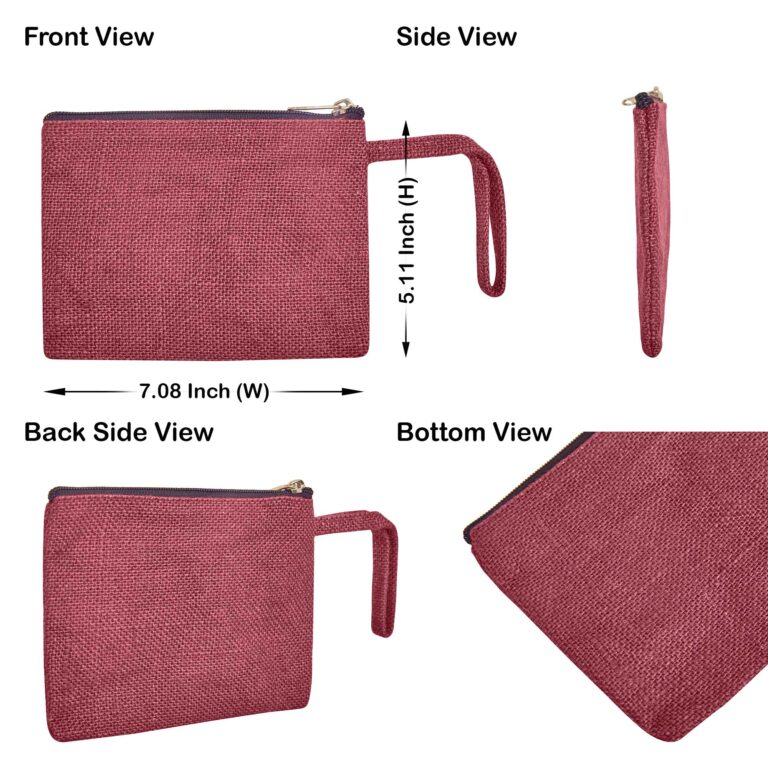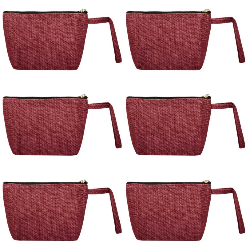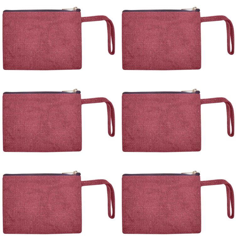 Pack of 6 Deep Red, Pink, Green, and Orange Jute Cosmetic Pouches– 5.11″x 7.08″