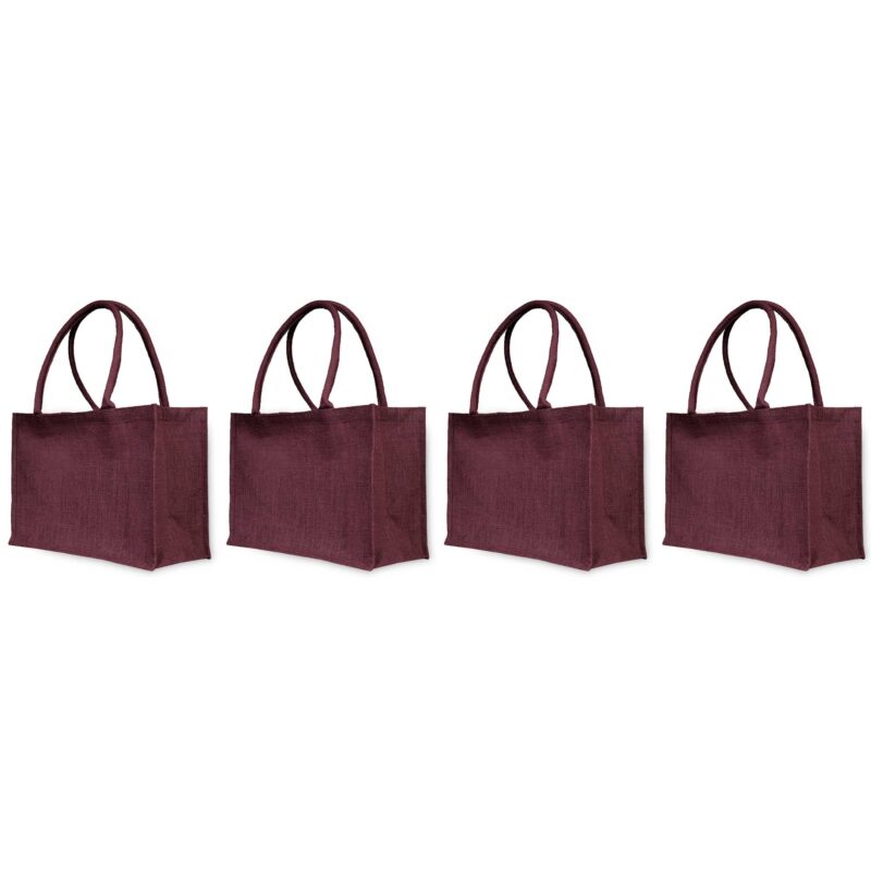 4-Pack Jute Tote Bags – Reusable 15″x12″x6″ Deep Red, Pink, Green & Orange