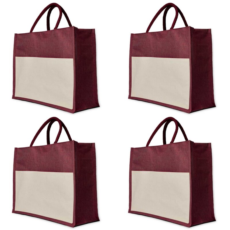 4-Pack Reusable Juco Tote Bags – Daily Use & Promotions – 16″ L x 12″ H x 7″ W