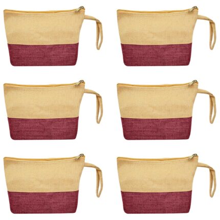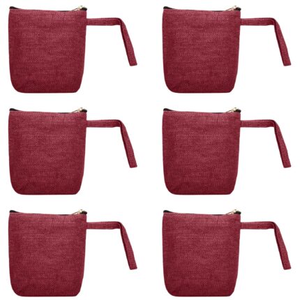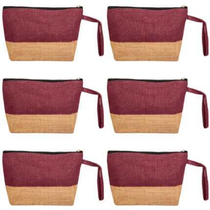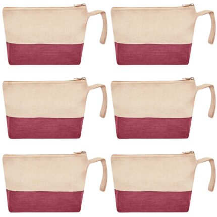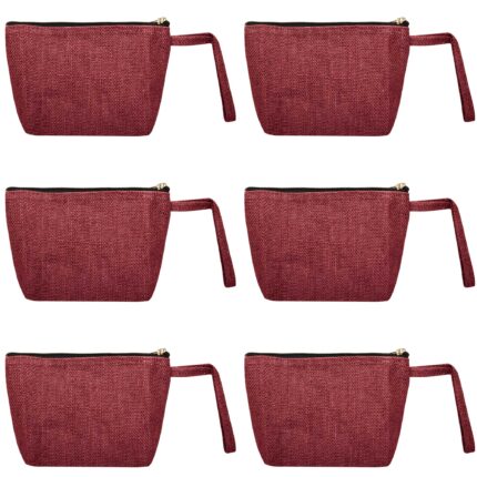 6-Pack Jute Cosmetic Pouches – Deep Red, Pink, Green, Orange – 5.9″x9.45″x2.95″