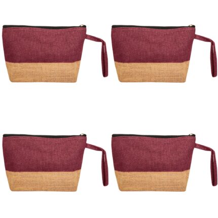 4-Pack Jute Cosmetic Bags – Deep Red, Pink, Green, Orange – 9.45″x5.9″x2.75″