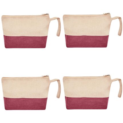 4-Pack Jute Cosmetic Pouches – Deep Red, Pink, Orange, Green – 5.9″x9.45″x2.95″